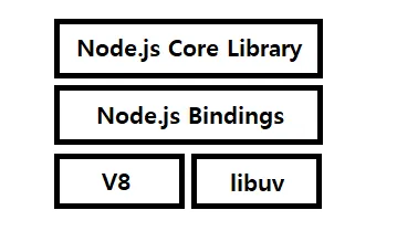 우리가 코딩한 자바스크립트 코드는 노드가 알아서 V8libuv에 연결해주므로, 노드를 사용할 때는 C와 C++은 몰라도 된다.