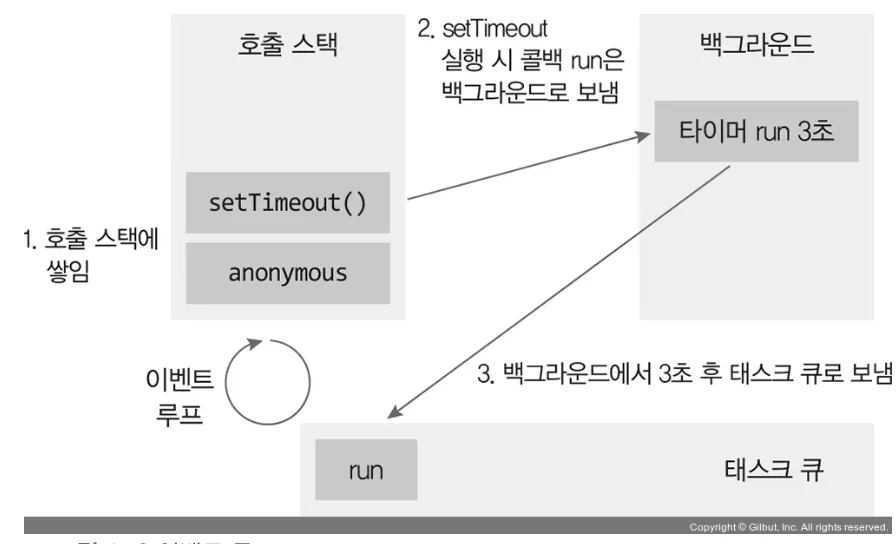 이를 이해하기 위해서는 이벤트 루프, 태스크 큐(task queue), 백그라운드(background)를 알아야 한다.