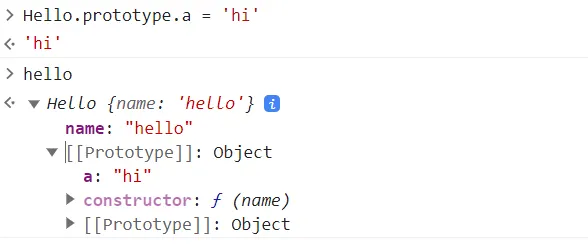 Object.getPrototypeOf(hello) === Hello.prototype; // true