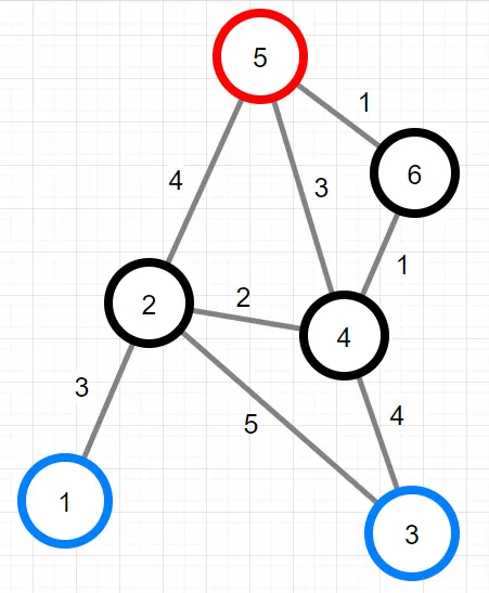 6 | [[1, 2, 3], [2, 3, 5], [2, 4, 2], [2, 5, 4], [3, 4, 4], [4, 5, 3], [4, 6, 1], [5, 6, 1]] | [1, 3] | [5] | [5, 3] |