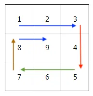 달팽이: 부터 까지의 숫자가 시계방향으로 이루어져 있다.