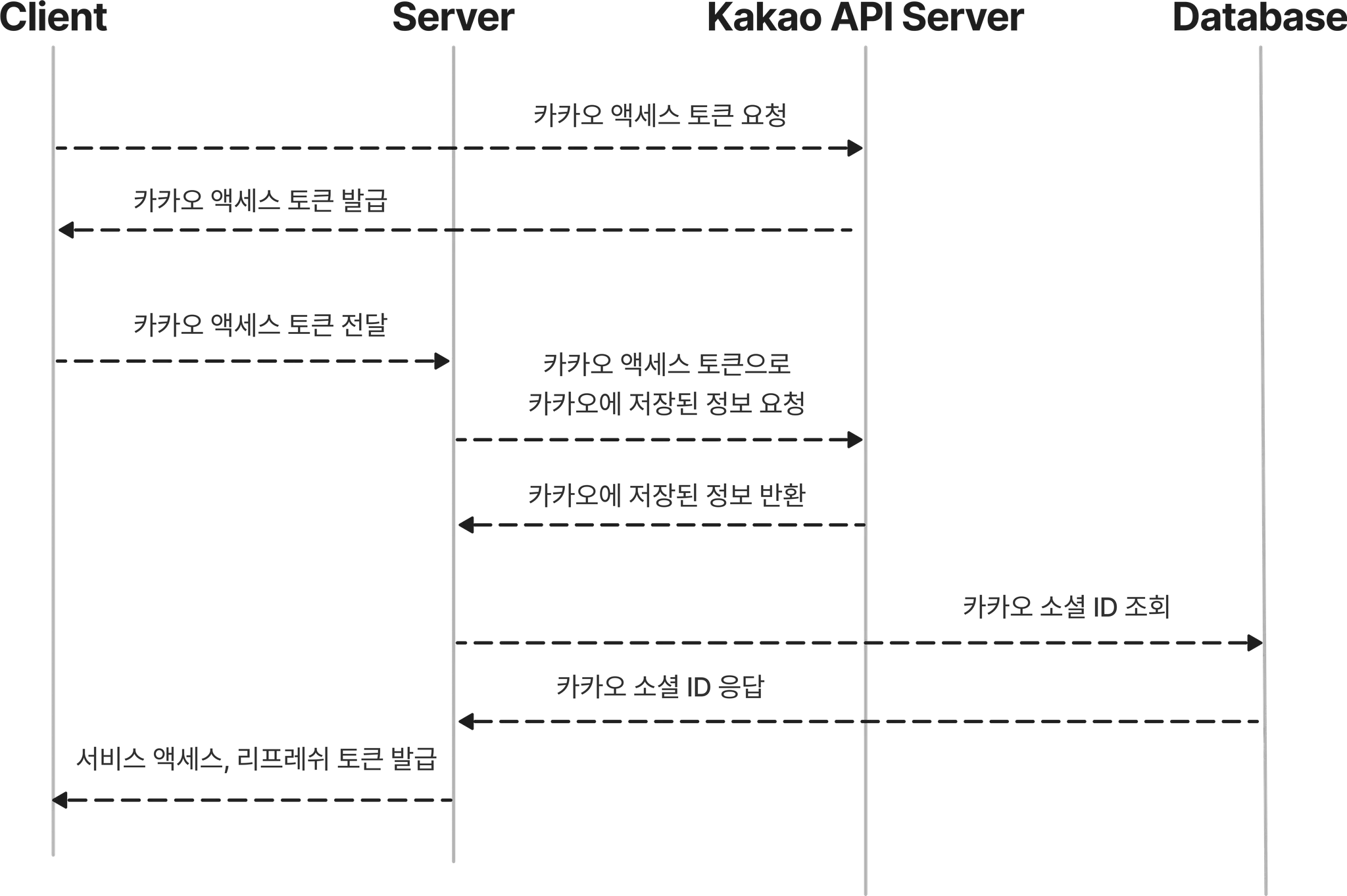 클라이언트-서버 간의 카카오 로그인을 처리하는 다양한 방법이 존재했는데, 우리 팀에서 선택한 방법은 다음과 같다.
