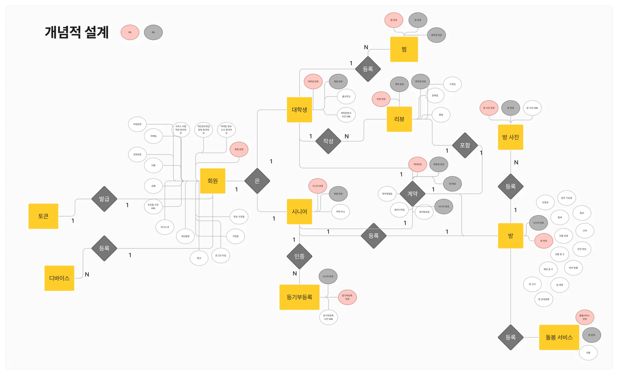 이전에는 데이터베이스를 꼼꼼히 설계하지 않고 바로 코딩을 시작하여 많은 문제가 발생했었다. 데이터의 중복, 비효율적인 데이터 조회, 비정규화된 데이터 구조 등 여러 문제들이 프로젝트의 성능과 유지보수성을 저해했다. 이번 프로젝트에서는 상향식 데이터베이스 설계 방법을 통해 각 엔티티의 역할과 관계를 명확하게 정의하였다.