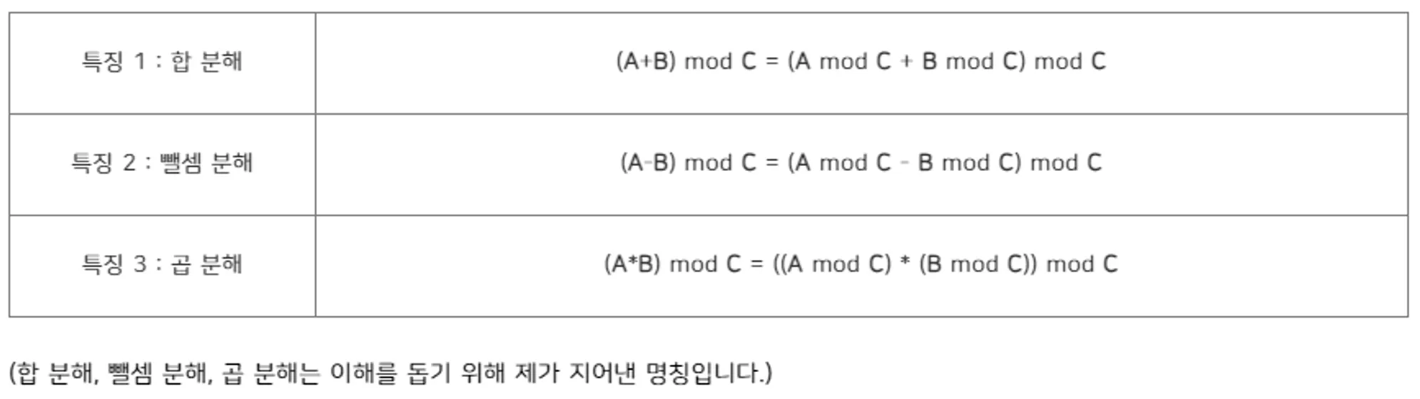 나머지 연산을 표현할 때는 mod로 표현하고, 프로그래밍 언어에서는 보통 %에 해당한다.